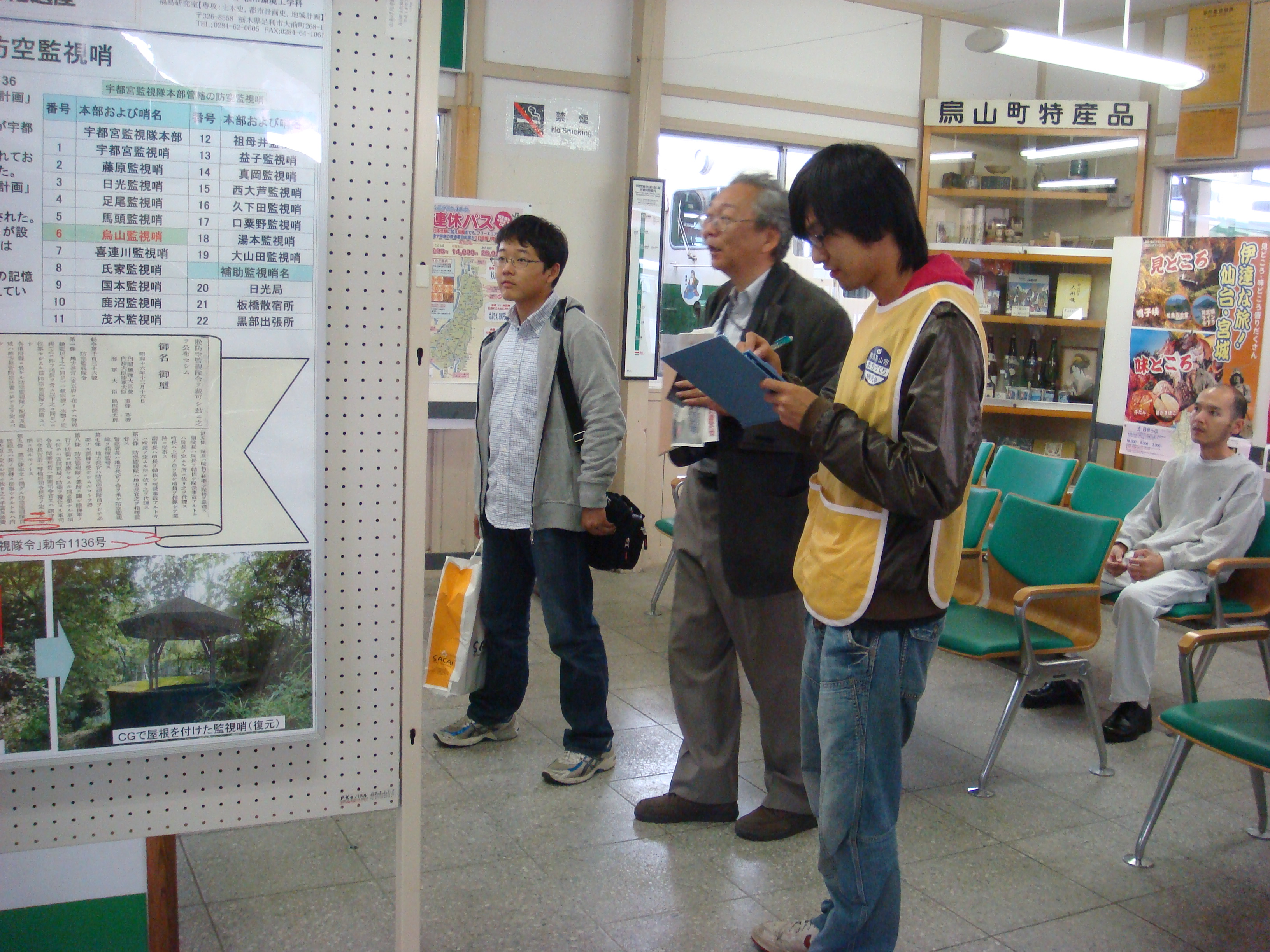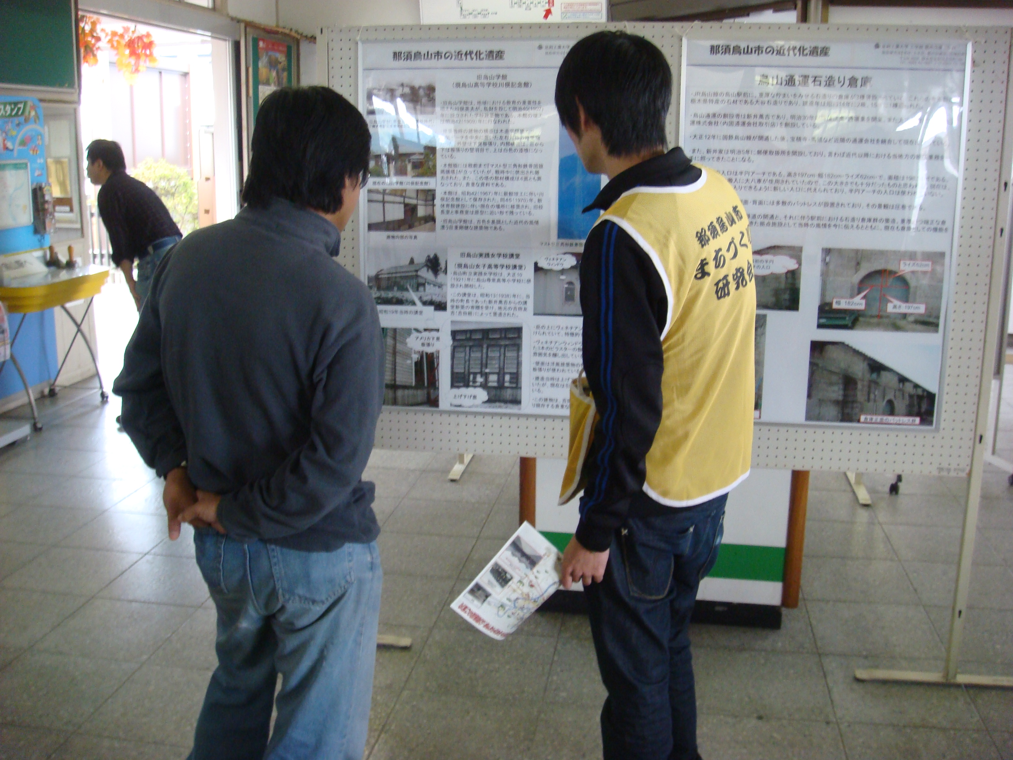 ・山あげ会館にてミニ講演会、旧国鉄烏山駅舎(現JR烏山駅舎)・東京動力機械製造(株)地下工場跡(現 (株)島崎酒造どうくつ酒蔵)では那須烏山市にある近代化遺産の特徴について、本研究室の卒業研究 生が来場者に解説しました