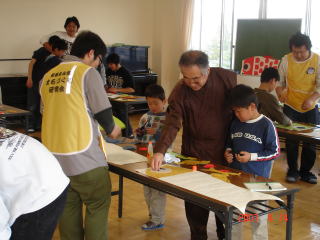 市内の子供たちと一緒に、那須烏山市の伝統工芸品である烏山和紙を使って鯉のぼりを製作しました。製作に際して、烏山和紙会館館長の福田弘平氏にご指導頂きました。